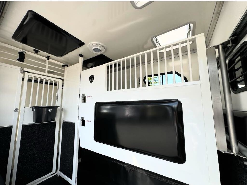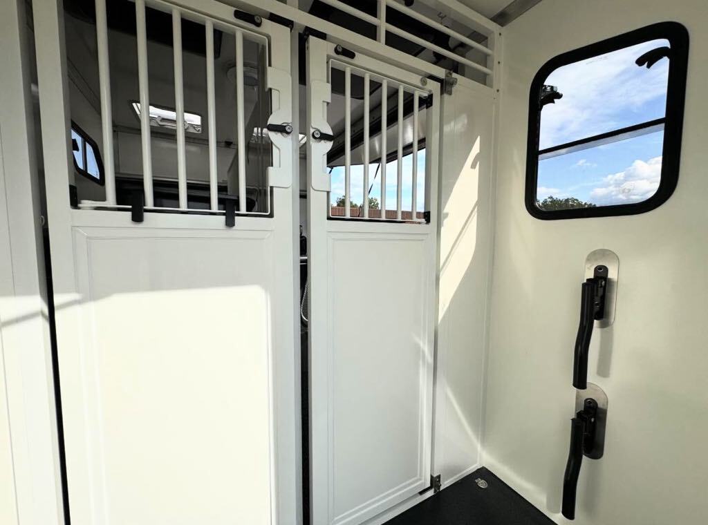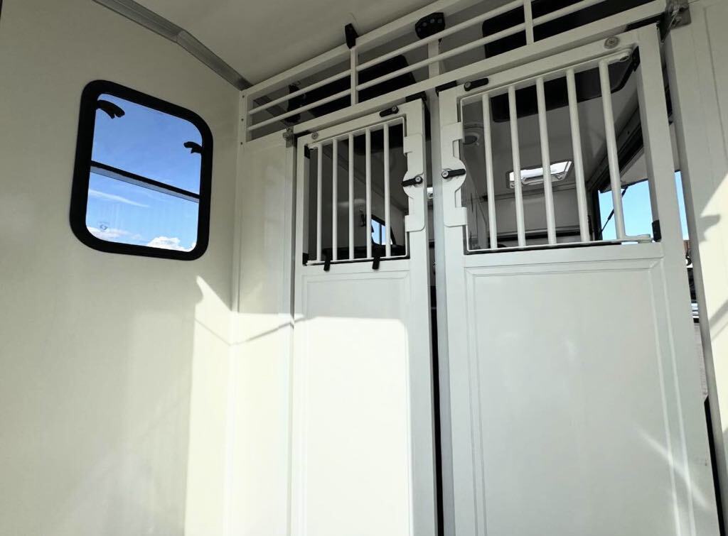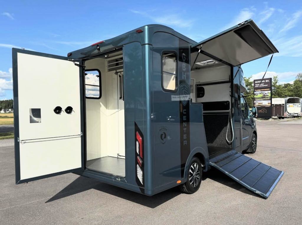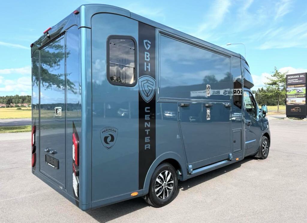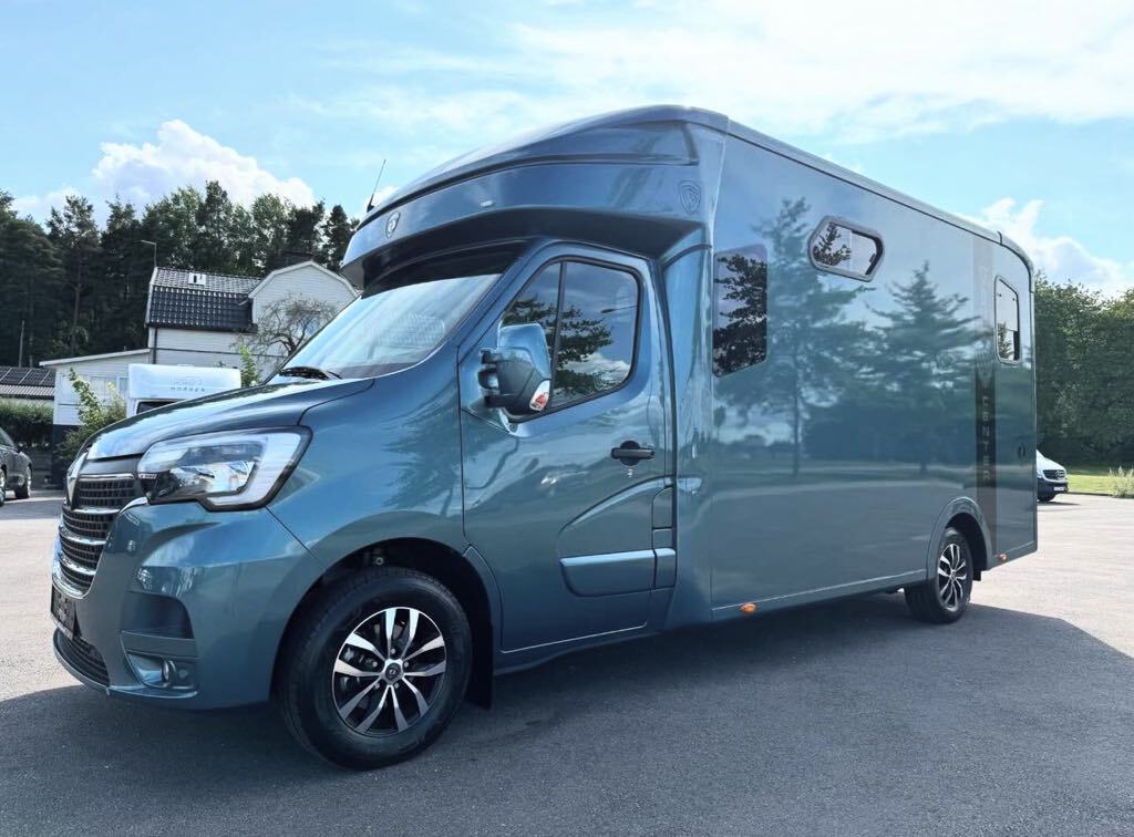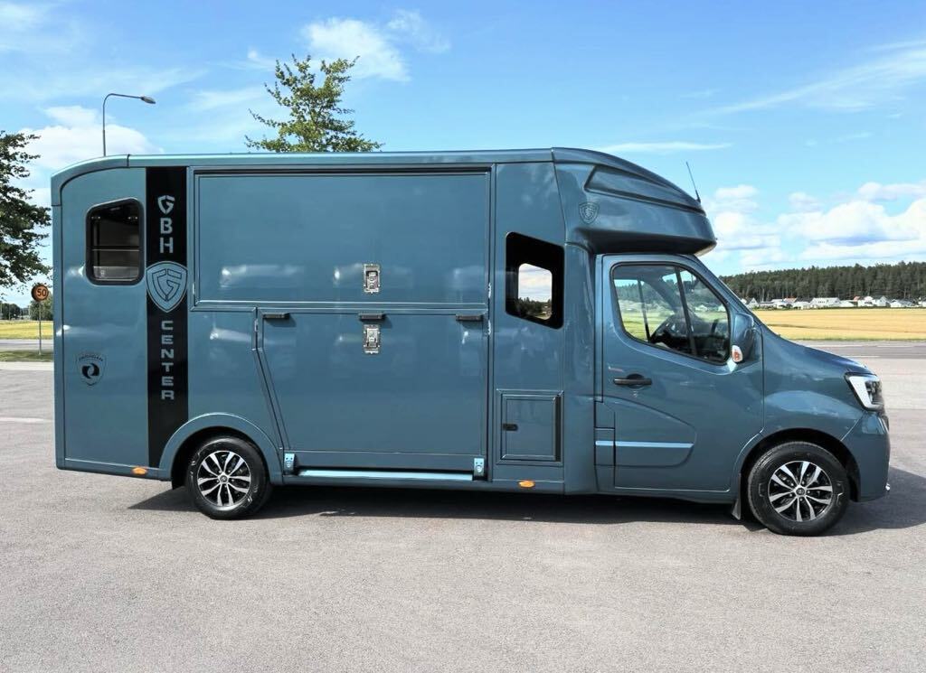 Renault Master 165 hk är ett modernt transportfordon för 2 hästar och 5 passagerare med både komfort och säkerhet i fokus. Fordonet är utrustat med en sängplats över förarkabinen och kan erbjuda en våningssäng för övernatting. Hästdelen är försedd med robust stuteri-inredning med fullständiga dörrar till varje box, vilket garanterar högsta säkerhet och komfort för dina hästar.